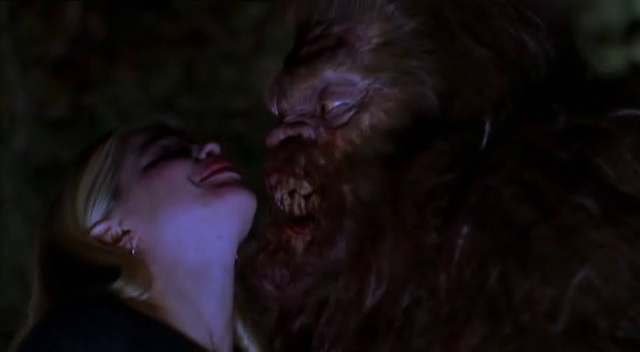 Quant au bigfoot, on revoit son gabarit nettement à la hausse, même pour lui. Dans son environnement naturel, il côtoie la cime des arbres et paraît avoisiner les trois ou quatre mètres de haut. À l’approche des chalets, cette démesure est retranscrite de manière correcte. Preuve en est avec une «défenestration» inattendue en milieu de parcours. Toutefois, quand ces attaques l’obligent à investir les lieux, sa taille rapetisse inexplicablement pour rentrer dans le cadre des pièces intérieures. Le procédé est aussi flagrant que grossier et ne rattrape en rien quelques assauts à l’hémoglobine timorée. Pour le reste, la bestiole porte bien son nom. Elle a néanmoins le mérite de nous épargner des images de synthèse immondes, le tout étant réalisé à partir d’animatroniques.