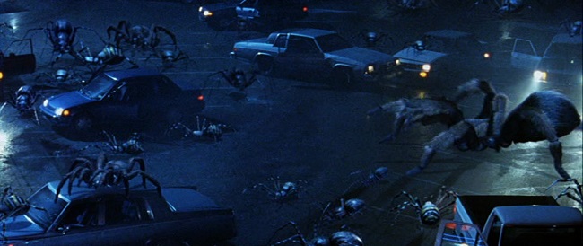 La tonalité « cartoonesque » est avérée, à tel point que l’on pourrait se croire dans un dessin animé de Tex Avery plus que dans une production de monstres d’Universal Pictures des références précitées. On accroche ou pas à un tel traitement. Il est vrai que certains passages peuvent paraître répétitifs. En cause, l’incrédulité des locaux et l’incompétence des dirigeants de la ville. De même, le rythme effréné tend à faire s’accélérer la croissance des arachnides, au détriment du bon sens. On a beau évoquer la présence d’une mine ou l’enclavement du désert, il n’empêche que la cohérence n’est pas la principale priorité du metteur en scène. Rien de préjudiciable à l’ensemble, mais un manque de finitions évident au niveau des détails, y compris pour le dénouement.
