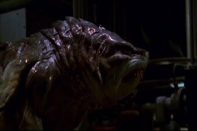 D'ailleurs, c'est le point fort du film, plutôt que de nous montrer des scènes gores à tout va, le film prend le temps de présenter tous les personnages et de montrer le meilleur d'eux, et parfois le pire. Etant donné qu'il s'agit d'une pure production des années 90, le contexte économique ou esthétique est maladroit, tout comme la réalisation, qui, sans être mauvaise, ne fera pas se lever les foules. Mais on s'accroche assez rapidement à tous ses personnages, à cette enquête qui prend ensuite des allures de chasse aux requins et qui rappelle indéniablement Les Dents de la Mer. Mais dans la deuxième partie, on est dans quelque chose de plus proche d'Alien, avec la traque d'un monstre, et les tentatives pour l'abattre, afin qu'il arrête de tuer des innocents. On distingue alors facilement les deux parties, qui sont assez complémentaires et bien amenées, malgré quelques longueurs inévitables sur ce genre de sujet. On passera aussi les explications scientifiques foireuses qui essayent de nous faire croire que la bestiole s'adapte en trente secondes à son environnement et se fait pousser des pattes.
