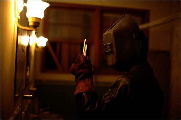 Toujours est-il que la partie found-footage est beaucoup moins plaisante. Sautes d’images fréquentes, parasites, sons moisis. On a beau justifier le procédé par l’endommagement des caméras, cela n’excuse en rien une action illisible au possible. Le cadrage se révèle vomitif à plus d’un titre et lorsque le tueur surgit, on ne comprend pas grand-chose. Il faut un autre angle pour enfin saisir ce qu’il fait. Au lieu d’accentuer le côté malsain et authentique de la méthode, on se retrouve avec une image imbuvable où les meurtres sont violents, mais peu visibles avec une certaine redondance dans les exécutions, et ce, en dépit de l’originalité de l’arme choisie (chalumeau de soudeur).