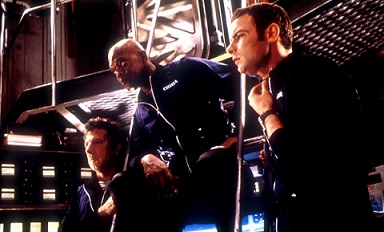 Parlons du casting qui semble fichtrement vendeur sur l’affiche : le vétéran Dustin Hoffman, le solide Samuel L. Jackson et la versatile Sharon Stone. Sans parler de ce bon vieux Peter Coyote, de Liev Schreiber (les Scream) ou de l’improbable (et inutile) Queen Latifah. De bons acteurs au demeurant mais qui ne semblent pas avoir été dirigé dans aucun des scènes du film, chacun s’attachant à reprendre leurs tics ou jeu habituel sans effort particulier. Samuel Jackson nous refait son Peur Bleue (celui de Renny Harlin), Sharon Stone fronce les sourcils et joue les femmes mi-fortes/mi-fragiles… Quand à Dustin Hoffman, le pauvre bougre semble littéralement absent, se contentant de débiter son texte sans conviction, poussant un peu la gueulante lorsqu’on lui balance un peu trop d’eau dans les scènes « d’action » (on y reviendra) ou pleurant comme une madeleine dans son scaphandre tout seul au fond d’un bassin vide. Des acteurs « bankables » pour meubler un film au scénario convenu et à l’intrigue mollassonne ? On franchirait bien le pas…