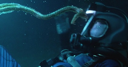 On pourrait encore pinailler sur l’avance que le spectateur a constamment sur l’histoire et les protagonistes (même sans avoir lu le livre). Ou encore sur ces séquences d’action qui ne reposent que sur des explosions dans la station et des fuites d’eau que nos héros essaient de colmater comme s’ils avaient vécu toute leur vie dans une station à 300 m de profondeur (et qui débitent dans leurs dialogues tout le contraire sur leur inexpérience dans ce type d’environnement !). Ou encore sur l’avarice des producteurs ou du réalisateur quand il s’agit de nous montrer une créature (un calamar de 12 mètres de long ! chic ! ah mince, on ne verra qu’une grosse tâche sur un sonar cheapos).