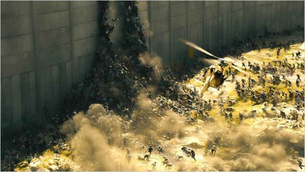 L'on conserve alors un point de vue principal (celui de Gerry Lane) pour entrer dans le vif du sujet. Pour cela, l'on ne se fait pas prier. Il suffira d'à peine cinq minutes pour voir débouler les contaminés et provoquer une apocalypse Z. À ce titre, la séquence dans les rues de New York est saisissante (on comprend mieux pourquoi elle figure en tête des trailers). C'est rapide, brutal, grandiloquent de par son échelle. Les plans larges et aériens sont également présents pour exposer l'ampleur du désastre. Au lieu de contempler la désolation après le passage des zombies (si coutumière dans ce genre de productions), on s'émerveille devant cette fulgurante dévastation qui se propage avec une facilité déconcertante.