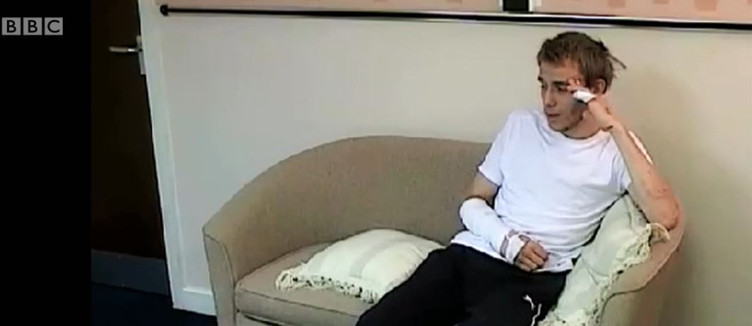Un soir, en entendant des cris, des voisins ont finalement appelé la police. Un agent l’a retrouvé dans les escaliers, une serviette imbibée de sang autour du bras et une quantité énorme de sang sur les murs, sur la moquette et dans le lavabo.