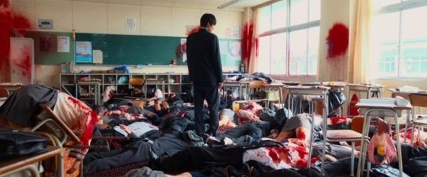 Le sol est couvert d’une mare de sang, de plusieurs dizaines de cadavres d’écoliers, et d’une myriade de billes rouges.