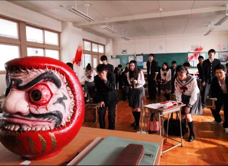 Les quelques survivants restants, médusés et apeurés, tiennent tête à une poupée Daruma qui se fait l’immense joie de faire exploser la tête à ceux qui perdent à sa partie d’« Un, deux, trois, soleil ».