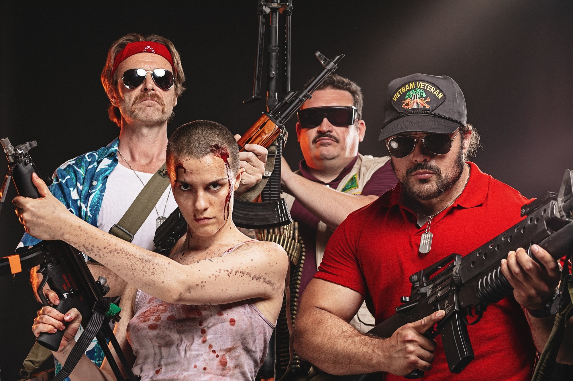 Hommage aux films d’action des années 80/90, bourré d’humour, d’action, de violence, de scènes gores, de Russes, de Vietcongs, de ninjas, de dinosaures, de punks… et surtout, chargés à bloc en testostérone, le tout emballé dans une bonne paire de baloches !