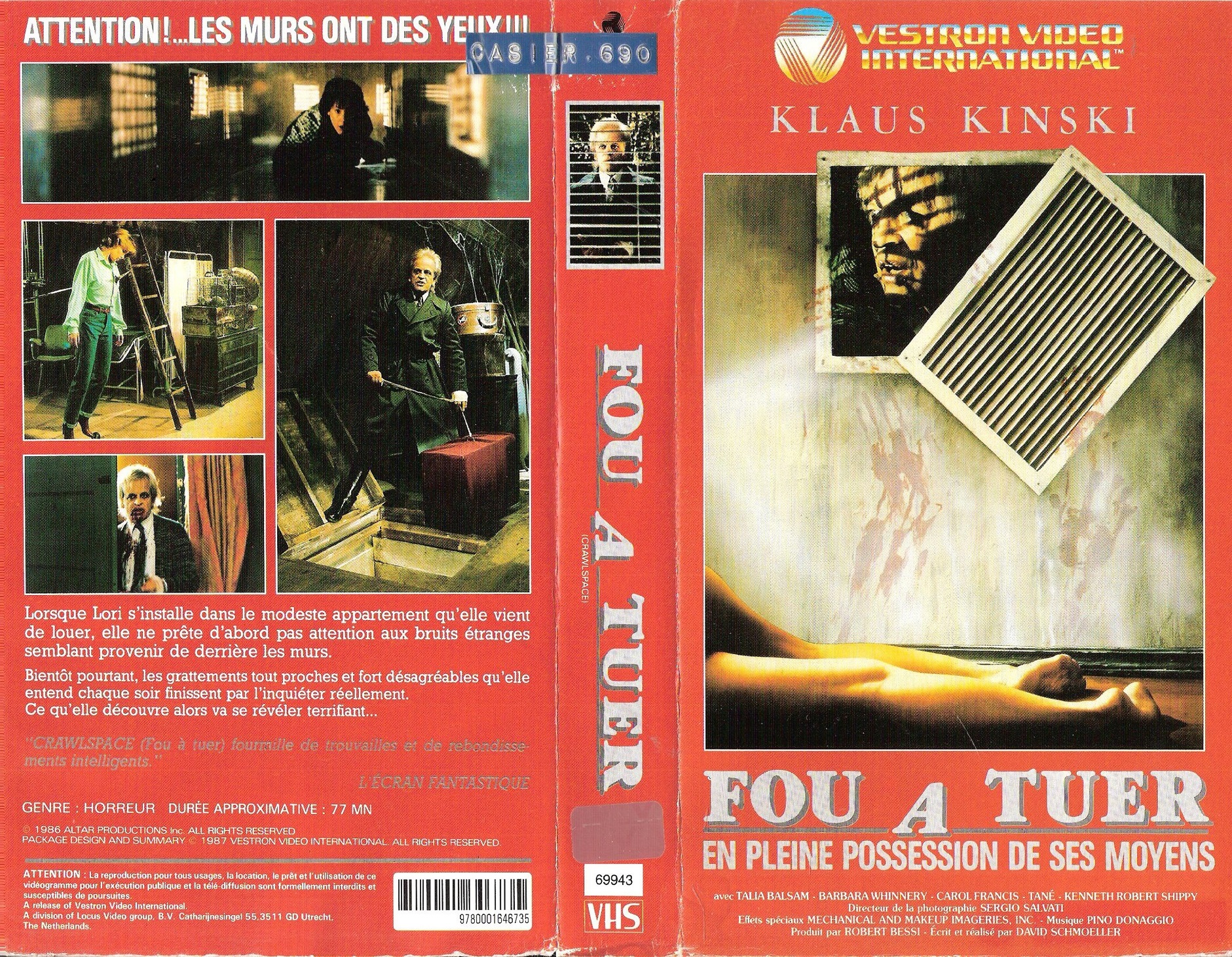 Le tournage de "Fou à Tuer" (Crawlspace) s'est très mal passé, à cause de sa vedette Klaus Kinski, acteur monstrueux dans tous les sens du terme.