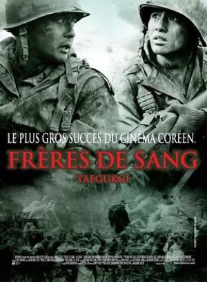Le titre original de Frères de sang, TaeGukGi, est en fait le nom du drapeau national de la Corée du Sud. Créé en 1876, il fut banni durant la colonisation de la Corée par les forces japonaises (1910-1945). Sa forme fut finalisée et généralisée en 1948 lorsque que le premier gouvernement coréen fut établi. Les éléments du drapeau symbolisent l'univers et la nature. La couleur rouge représente le mâle, le bleu la femelle, et les barres noires, la Terre. Un titre, en forme d'hommage à son pays, voulu par le réalisateur.