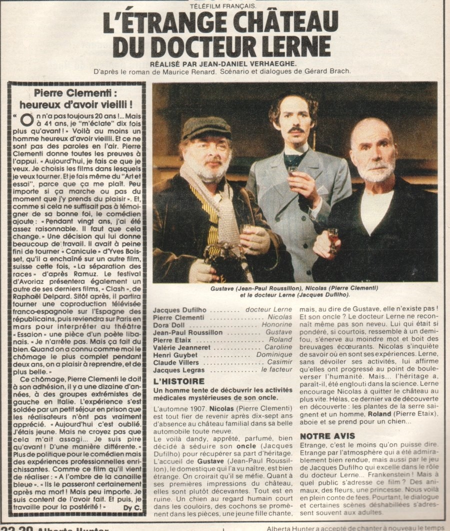 Téléfilm français adapté du roman de Maurice Renard "Le Docteur Lerne, Sous-Dieu" (puis "Le Docteur Lerne: Les Délires d'un Sous-Dieu") datant de 1908.