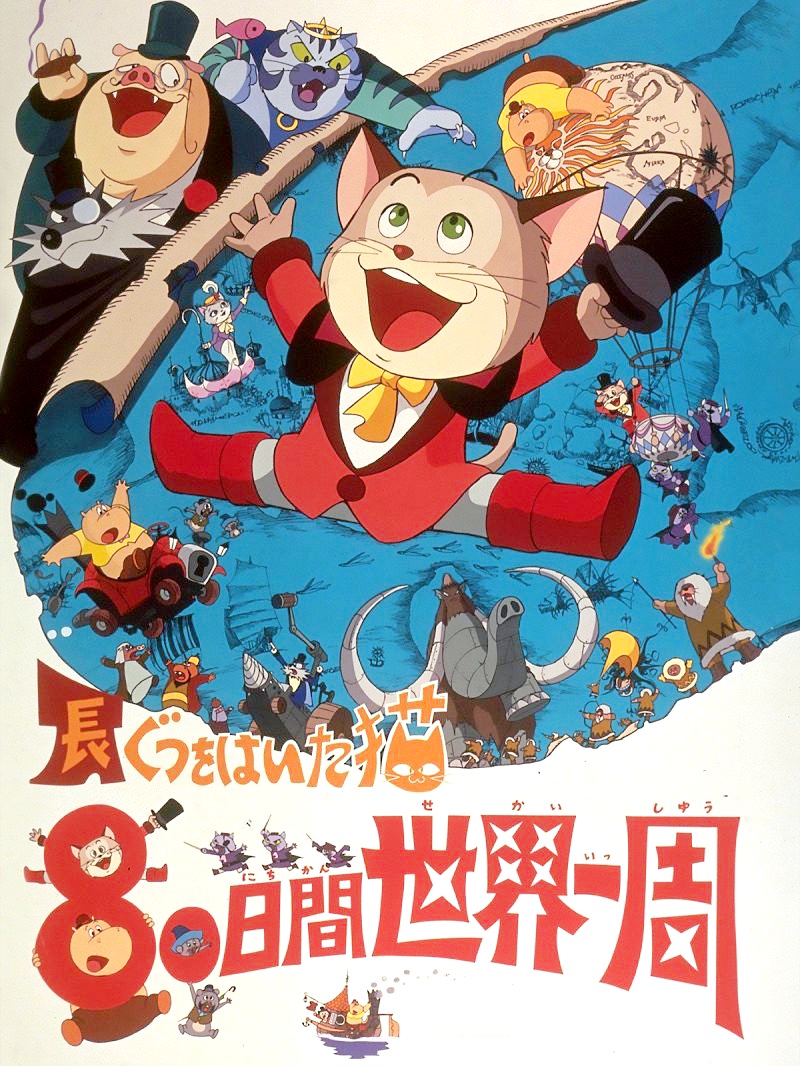"Nagagutsu o Haita Neko - 80 Nichikan Sekai Isshû" (長靴をはいたネコ 80日間世界一周) signifie "Un chat en Bottes a Fait le Tour du Monde Pendant 80 Jours".