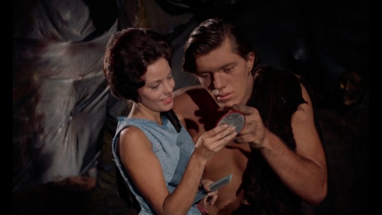 Dans le désert, une jeune fille est effrayée par l'apparition soudaine d'un homme préhistorique de deux mètres de haut.